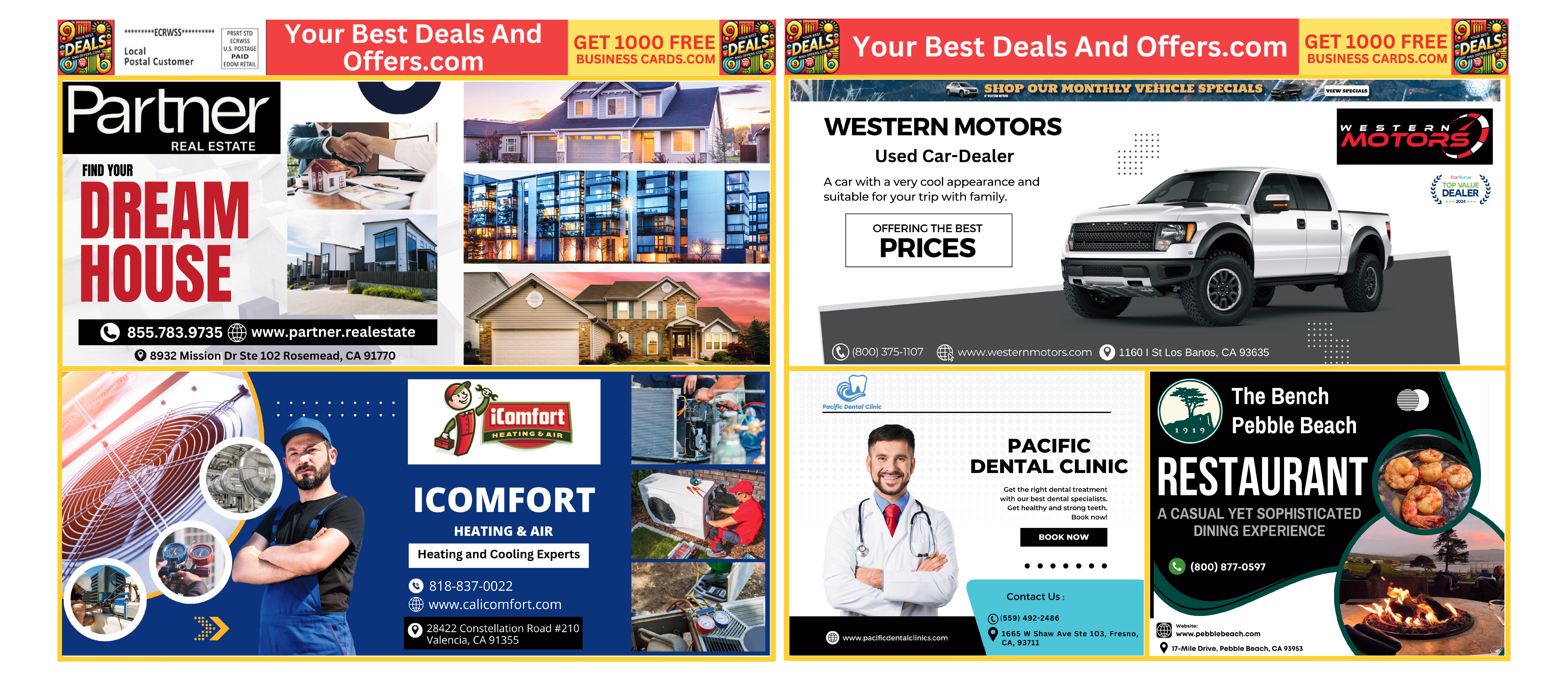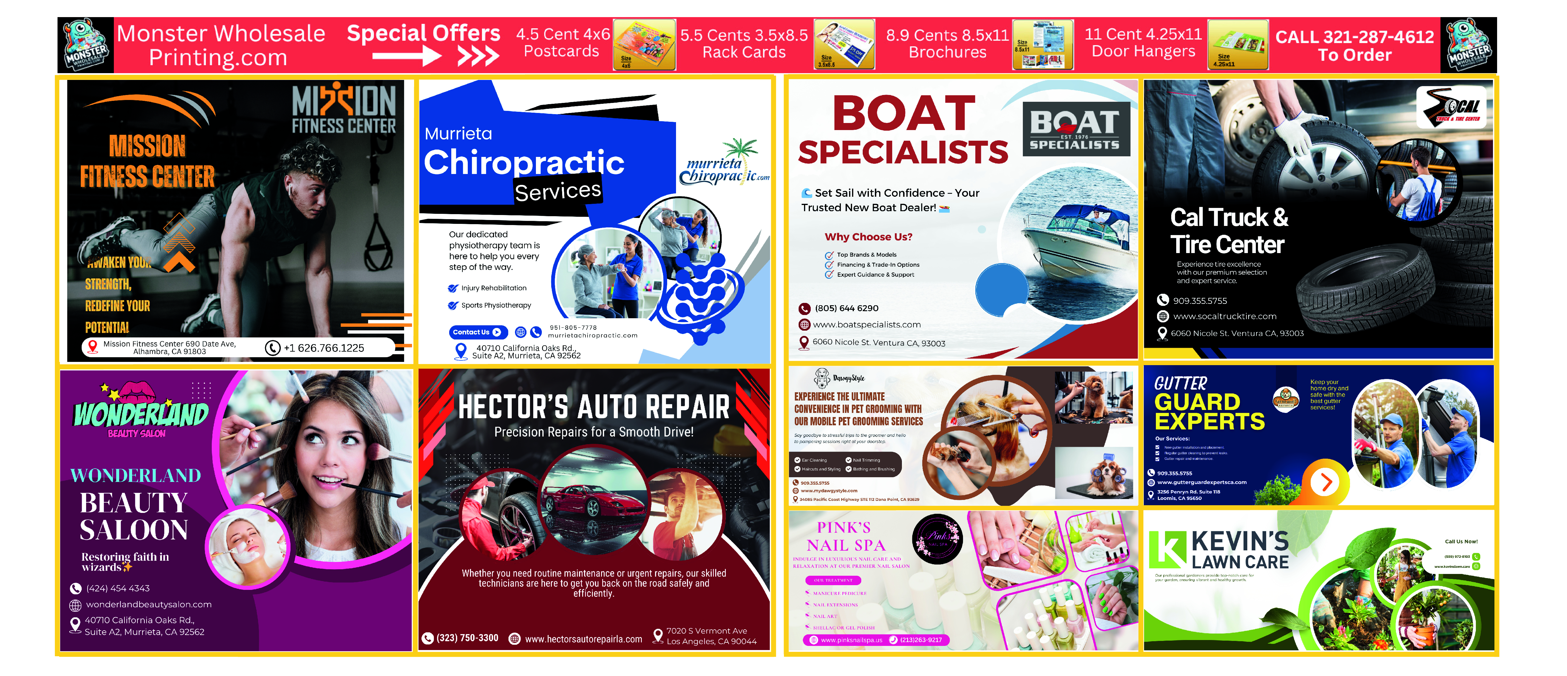 Ask How To Earn FREE Months> 40,000 Households (100lb Coated Text Mega Thick Paper)> 80,000 Exposures (Average 2 Exposures Per Home) > 11” x 25.50” Flat (3 Sheets Of Standard Paper Wide) > 11” x 12.75” Half Folded In The Mailbox (Monster Size) > 4 Total Pages (Ask About Getting Industry Exclusivity) > Choose Zip Codes & Exact Courier Routes To Be Delivered To HUGE NEW CLIENT BONUS BENEFITS Check Out Our Low Monster Brochure Advertising Rates With Our BOGO Special (Buy One Market & Receive A 2nd Market ½ Price) |